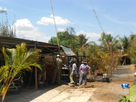 Quán cafe bị thiêu cháy do đốt cỏ.